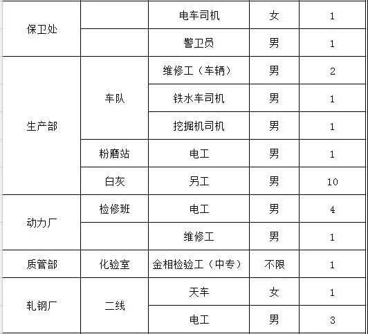 現公司因發展需求急招軋鋼廠各崗位工種人員若干名!!!